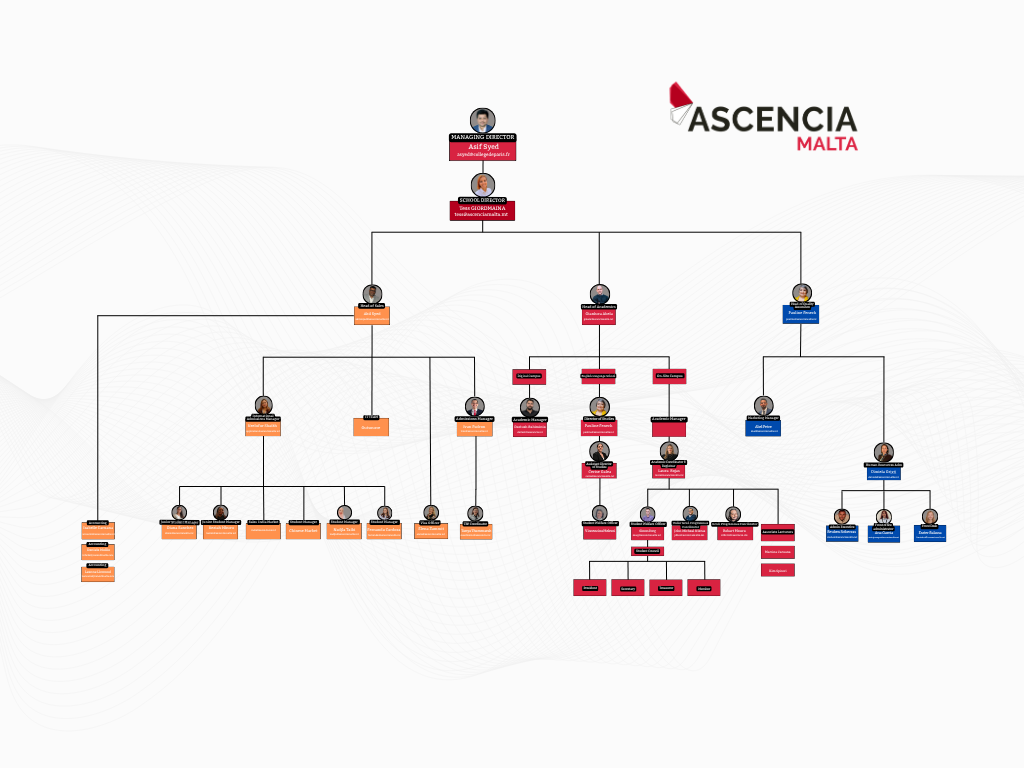 The school’s Director is recruited directly by the founder and president of the institution, Dr Olivier de Lagarde. It is the role of the School Director to recruit all other employees to join the Ascencia Malta team.